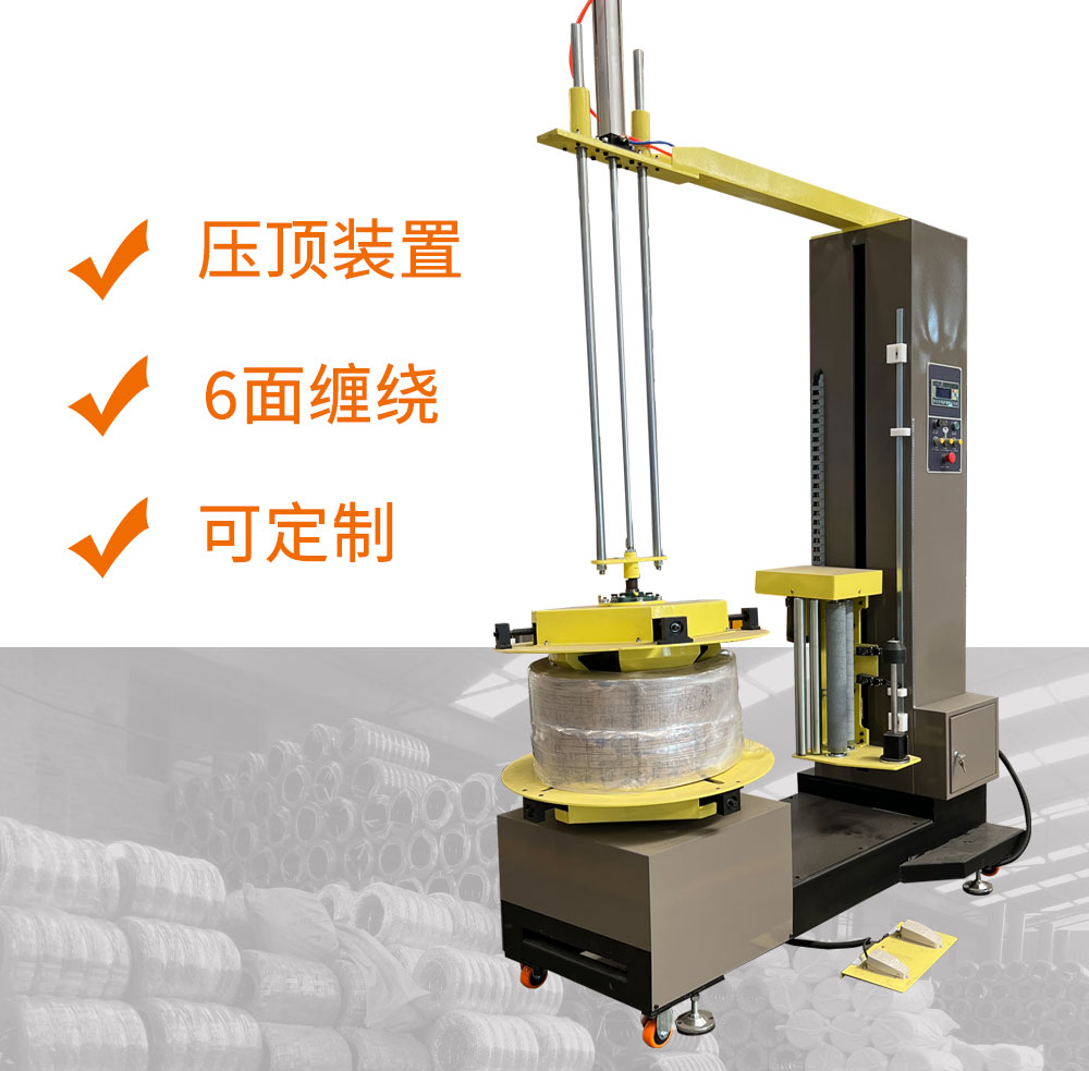 壓頂裝置保證貨物在包裝過程中平穩,包裝高度可根據客戶要求定做.并且可通過人工翻轉90實現六面包