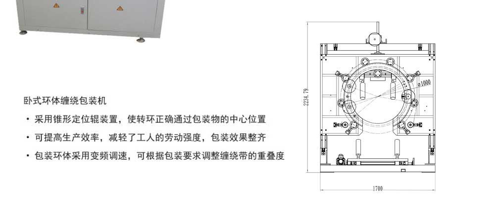 環(huán)體纏繞包裝機(jī)是專門為鋼圈、鋼絲、銅絲、輪胎、帶鋼等金屬環(huán)狀物品而設(shè)計、制造的一種新穎的纏繞包裝機(jī),其優(yōu)點在于完全替代了手工纏繞包裝,包裝速度快,操作方便,大大提高了生產(chǎn)效率,減輕了工人的勞動強(qiáng)度。包裝效果整齊。可采用多層包裝紙包裝,能起到防塵,防潮,保護(hù)設(shè)備表面的作用。